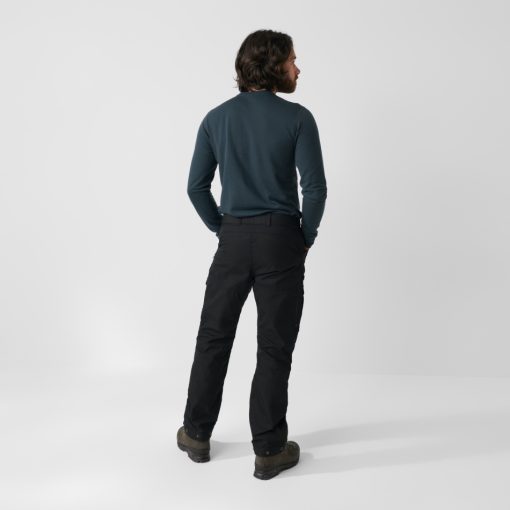 Durable trekking trousers with technical features, made from wind and water resistant G-1000 Eco. The model is based on our best-selling Vidda Pro but has improved ventilation options and a new, slightly slimmer fit that still has great freedom of movement. The buttoned strap adjustments at the leg endings can be removed and there are numerous practical pockets and details such as a knife pocket on the right-hand leg and a loop for an axe on the side of the waist. NOTE: this model has regular leg length. Also available in a 5 cm longer version (art.no. 81160) and with 30″ inseam length for all sizes (art.no. 86224).
