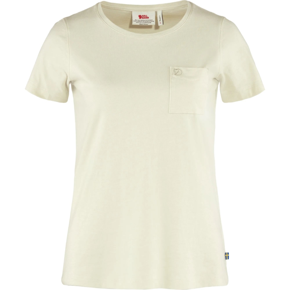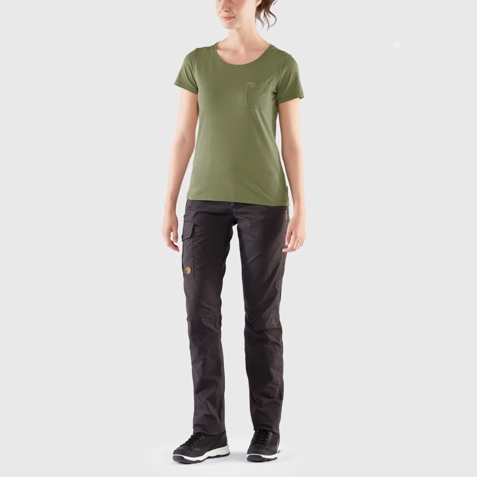Mugav ümarkaelusega T-särk Lühikeste Varrukatega Orgaanilisest Puuvillast Trikoo. Tikitud Fjällräveni Logoga Rinnatasku.